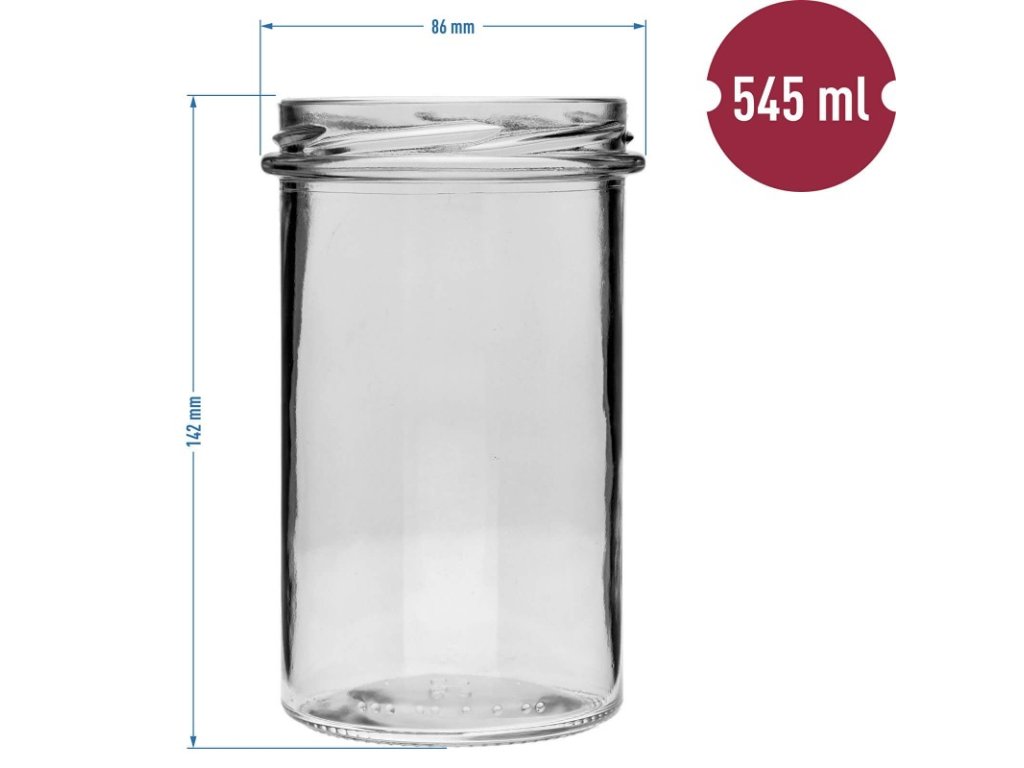 Dóza zavařovací sklenice rovná 545 ml O82 - s černým uzávěrem 6 ks
