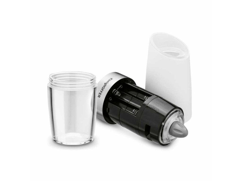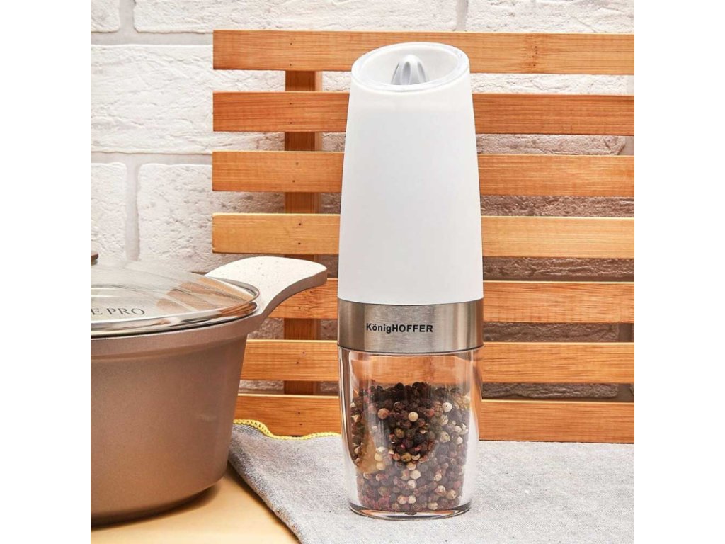 Praktický a elegantní elektrický mlýnek na sůl a pepř Elektrický mlýnek na sůl a pepř je ideálním pomocníkem do každé kuchyně. Díky elektrickému mlecímu mechanismu s keramickými otřepy můžete do pokrmů přesně a efektivně přidat čerstvě mletý pepř a sůl. Průhledná nádoba vám vždy včas signalizuje, kdy je potřeba koření doplnit.