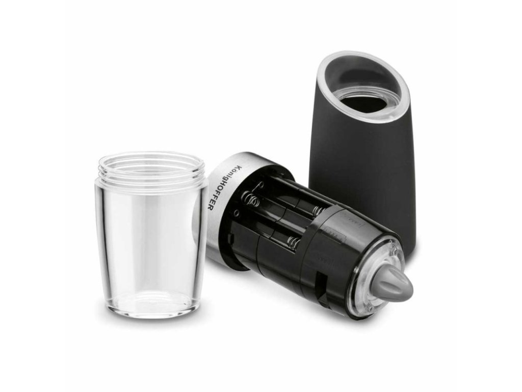Elektrický mlýnek na sůl a pepř je dostupný i v jiných barvách. Vyžaduje 1,5 V AAA baterie (6 kusů), které nejsou součástí výrobku.