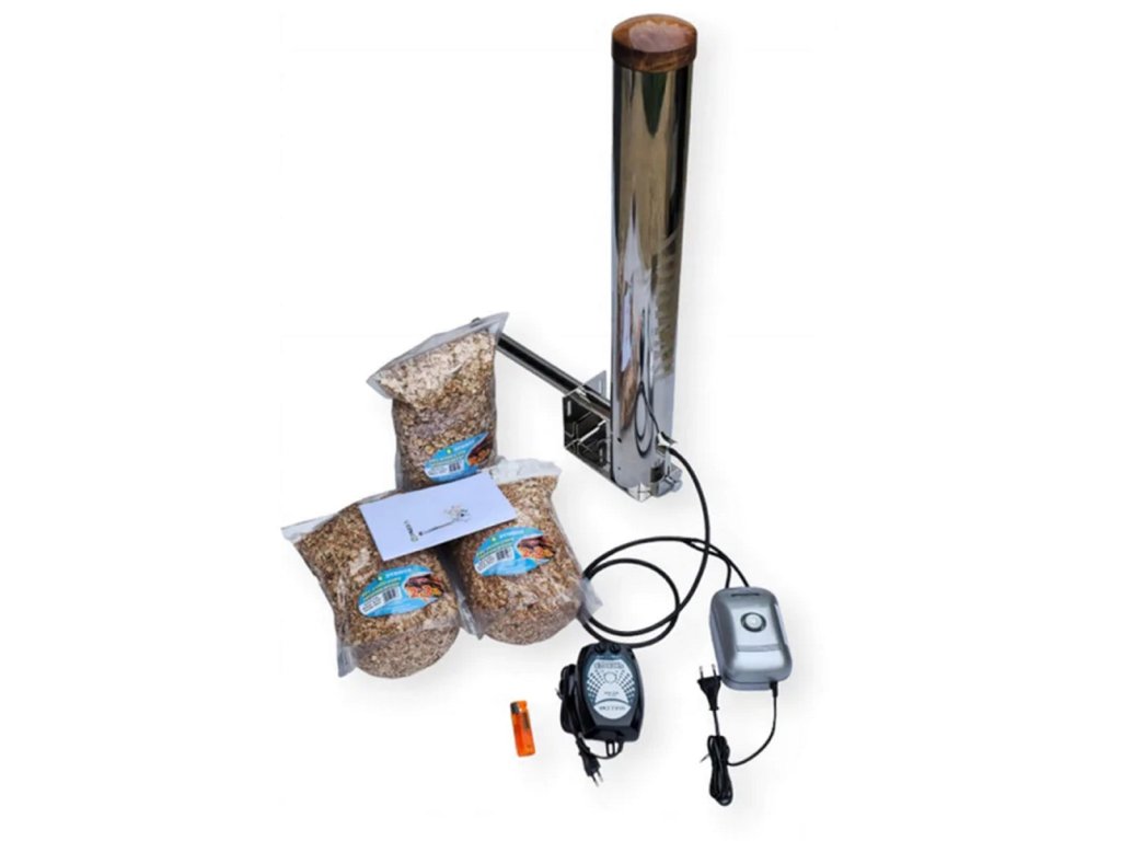 Kompletní sada – generátor, pumpička, napájecí kabel (odolný do 260 °C), 3 kg štěpek na uzení, zapalovač a návod k použití