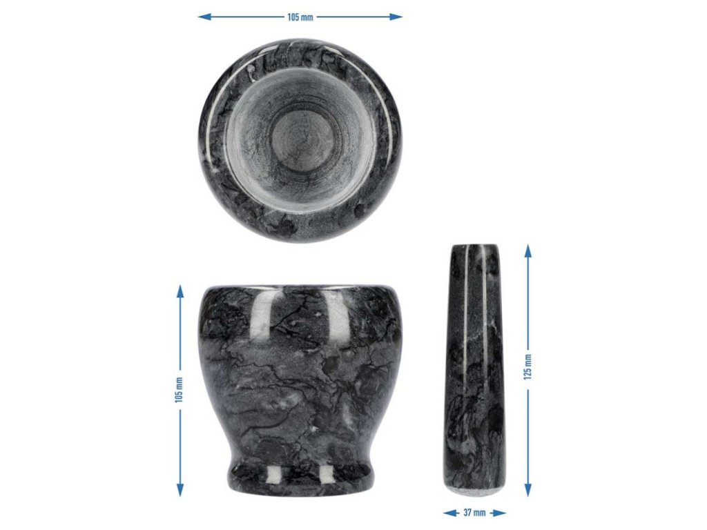Působivý, dokonale vyleštěný, lehce lesklý vnější povrch mramoru a klasicky profilovaná forma hmoždíře z něj činí dokonalou kombinaci funkčnosti a estetiky. Tento hmoždíř bude skvěle fungovat v každé kuchyni, tradiční i moderní. Snadno ho schováte do malé skříňky, ale díky jeho dekorativnímu vzhledu jej pravděpodobně budete raději mít na pracovní desce nebo polici.