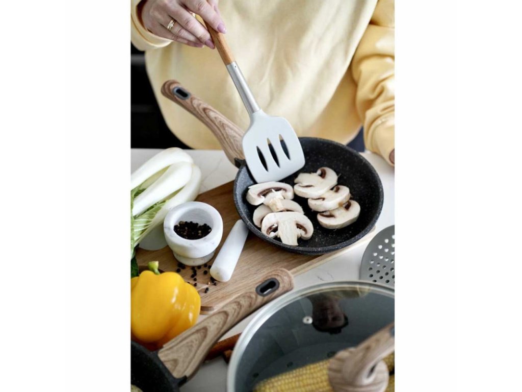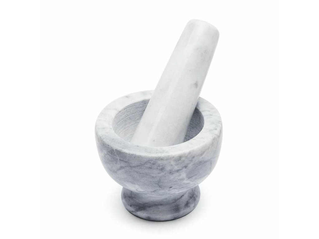Malý hmoždíř umožňuje připravovat chutné a voňavé pokrmy. Čerstvě nastrouhané koření dodá maximální chuť. Tvar kalíšku umožňuje držení nádoby při drcení, takže práce je pohodlná a stabilní i s tvrdými zrny. Šedý mramor je extrémně odolný a zároveň elegantní. Tento hmoždíř je dekorativní vychytávka a praktický pomocník na léta.