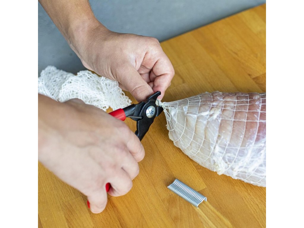Nenahraditelný pomocník v kuchyni - kleště usnadní umístění specializovaných klipů na střeva, střívka a síťky na klobásy při přípravě vašich oblíbených mas a uzenin!