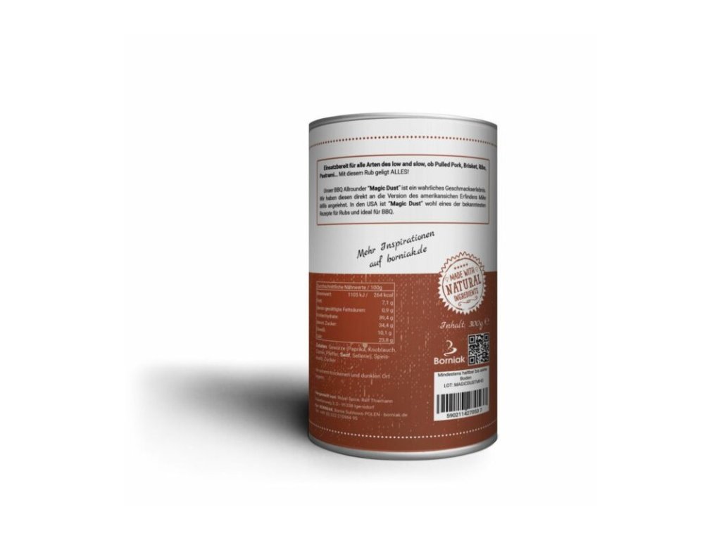 Náš gril "allrounder" je skutečný chuťový pocit. Recept jsme vycházeli z americké verze od Mike Millse. V USA je „Magic Dust“ pravděpodobně jedním z nejznámějších receptů na směs koření, ideální na grilování, ale i na uzení a smažení.