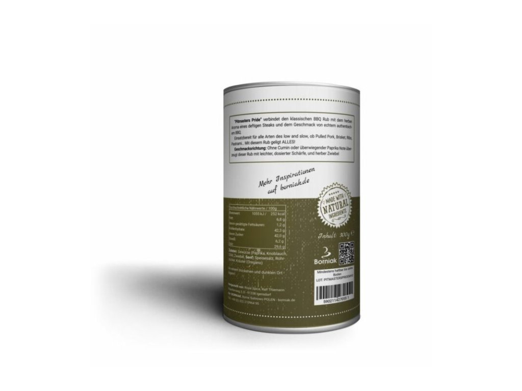Pitmasters Pride je kombinací klasické směsi jedinečného BBQ koření s nádechem bylinek. Koření, které překvapí rozmanitými chuťovými akcenty – ne nadarmo bylo ve „slepém testu“ hodnoceno jako nejlepší.
