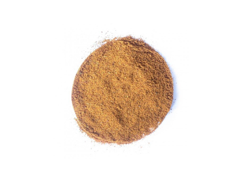 Složení: černý pepř, česnek, kmín, sladká paprika, bílý pepř, majoránka, muškátový oříšek, nové koření.