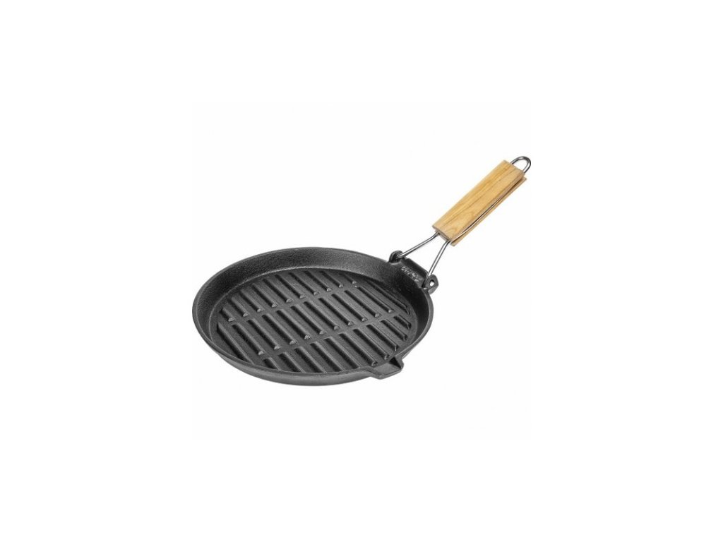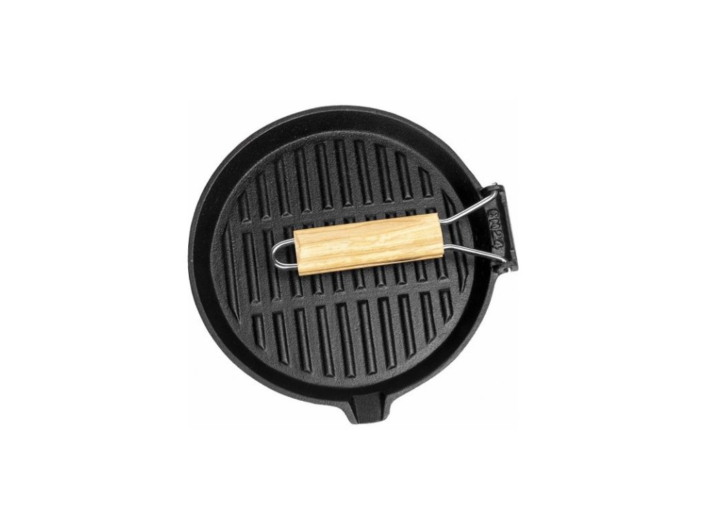 Skládací dřevěná rukojeť dokonale ochrání vaše ruce před popálením a také vám usnadní skladování pánve i v malé skříňce.