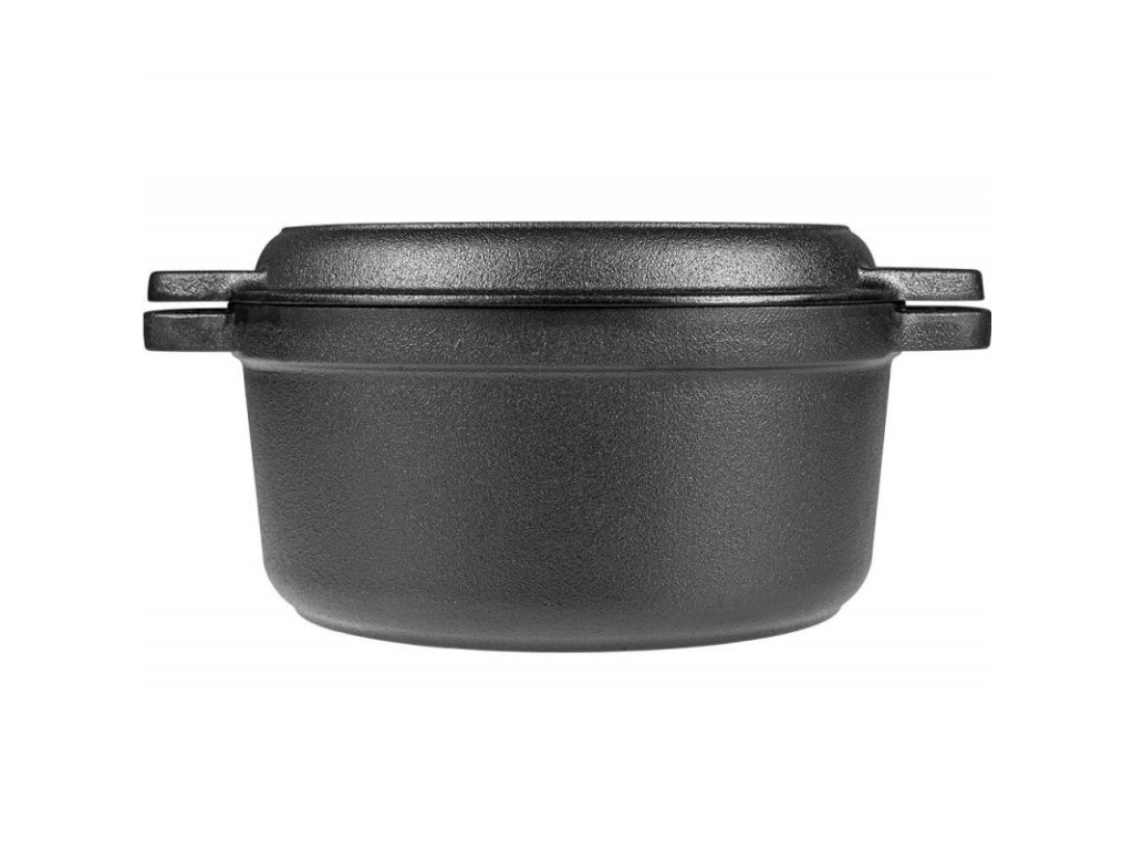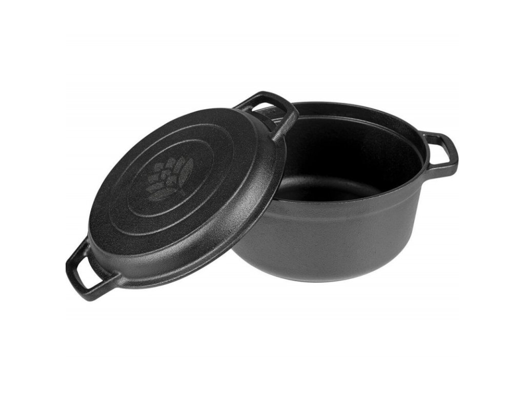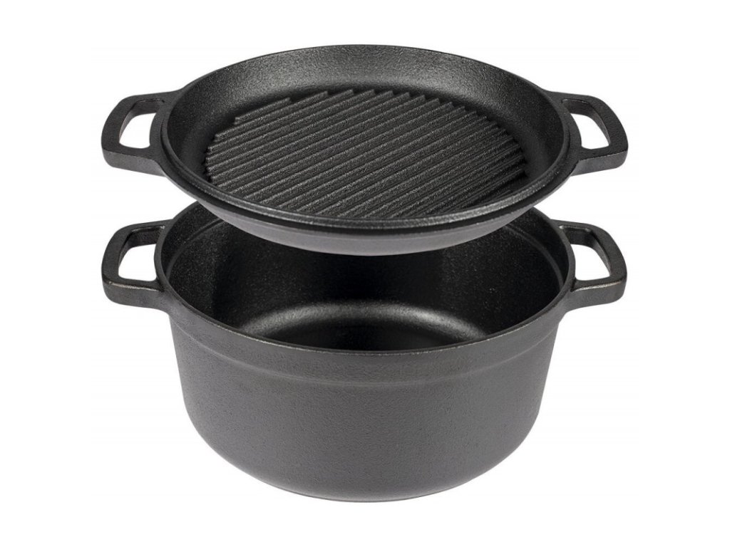 Dva v jednom - liatinový hrniec s uchami a pokrievkou s funkciou grilovacej panvice je nádoba, ktorú musíte mať vo svojej kuchyni! Vďaka nej budete nielen pripravovať lahodné jedlá z jedného hrnca, ale aj grilovať a piecť svoje obľúbené jedlá.