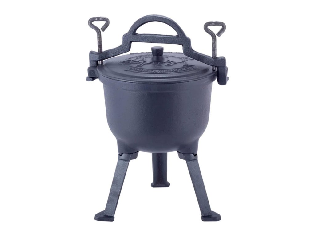 Pozvedněte outdoorové vaření na vyšší úroveň. Litinový kotlík Kamille o objemu 5 l je spolehlivý parťák na bivak, k ohni i pro setkání s přáteli. Připravíte v něm aromatické polévky, dlouho tažené guláše, dušená masa i zeleninové „jednogarnáče“ – přímo pod širým nebem.