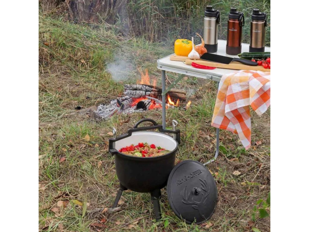 Chystáte se na biwak, táborák nebo víkendový pobyt na chatě? Vybavte se litinovým kotlíkem Konighoffer 8 l, který promění obyčejné vaření v zážitek. Ideální pro dušená masa, aromatické guláše, polévky i zeleninová jídla – ať už nad ohněm nebo doma na sporáku.