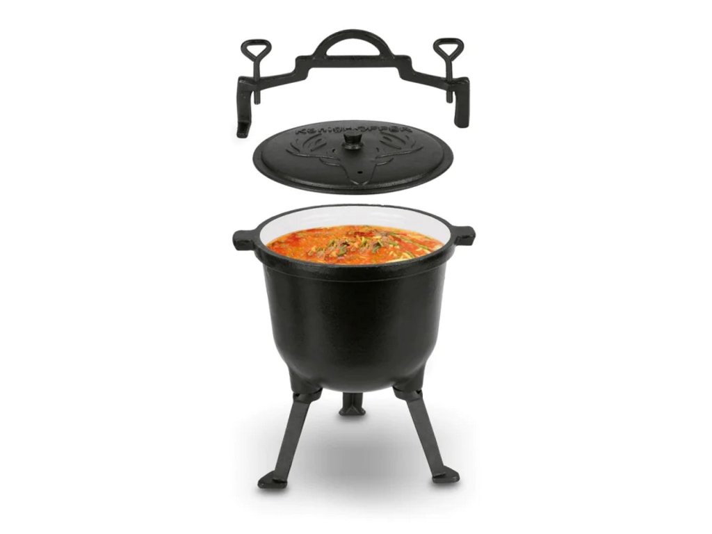 Skvělý pro guláše, dušené maso, fazolovou polévku, žeberka i vegetariánské směsi. Díky odolnosti vydrží roky pravidelného používání venku i doma.