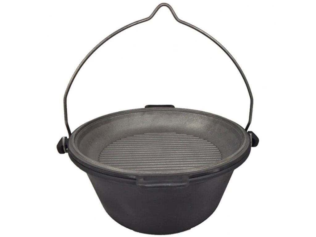 Objevte kouzlo vaření pod širým nebem s víceúčelovým litinovým kotlíkem o objemu 9 litrů, který spojuje dvě funkce v jednom – klasický kotlík a pánev. Robustní konstrukce z kvalitní litiny zajišťuje rovnoměrné rozložení tepla, dlouhé udržení teploty a výjimečnou odolnost i při intenzivním používání.