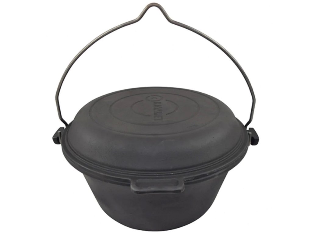 Víko kotlíku lze používat samostatně jako žáruvzdornou pánev – ideální na šťavnatá masa přímo na grilu nebo ohništi. Díky silné konstrukci a praktickému držadlu zvládne tento kotlík i náročnější podmínky při kempování nebo grilování na zahradě. Součástí jsou také odnímatelné nožky, díky nimž jej snadno postavíte do ohniště nebo sbalíte na cesty.