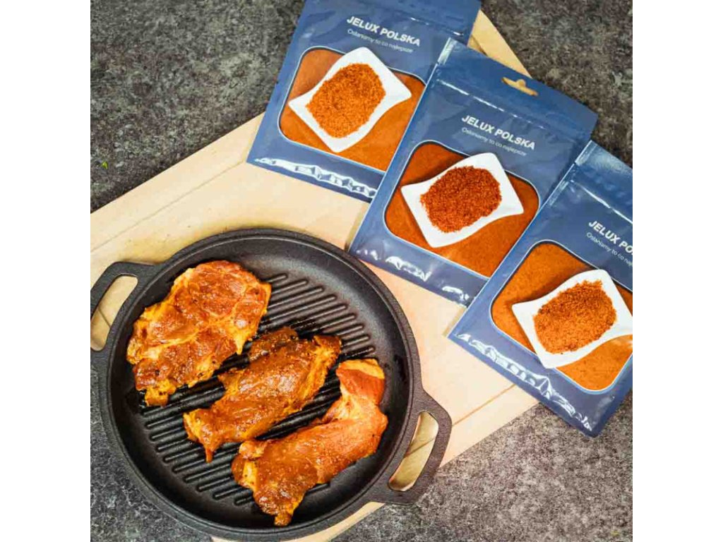 Použití: lze použít na vepřovou krkovičku, žebra, slaninu, různé druhy drůbežích prvků - stehna, křídla, filety atd., také hovězí maso.