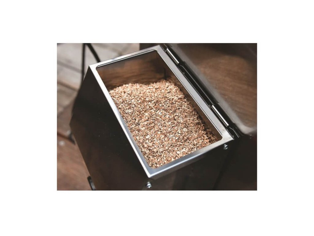 Násypka generátoru kouře je dostatečně velká, aby poskytovala až 8 hodin nepřetržitého kouře bez nutnosti přidávat nové štěpky.