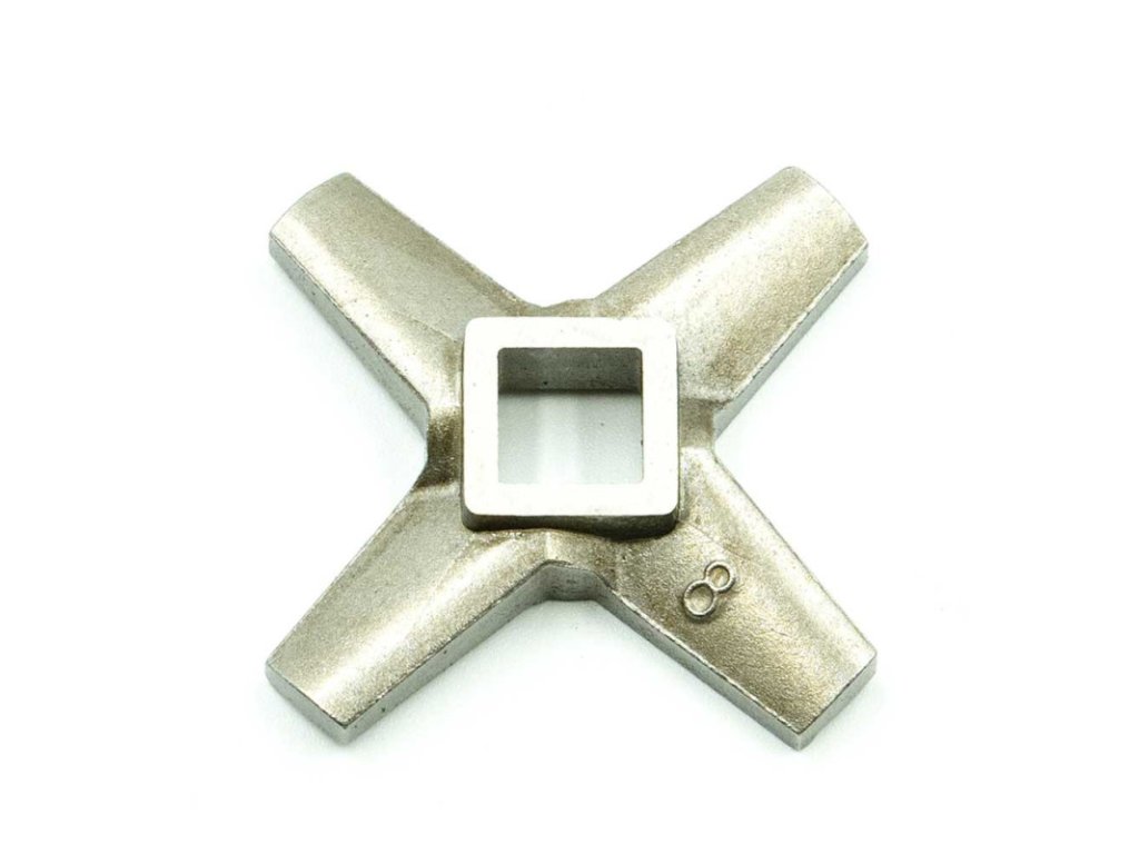 Nůž mlýnek na maso č. 8/1 je určen pro stroje s mlecí komorou č. 8. Častá výměna dílů zaručuje spolehlivý provoz zařízení po mnoho let. Výměna čepele je velmi snadná a nenáročná, což zajišťuje, že se během používání zabrání poruchám.