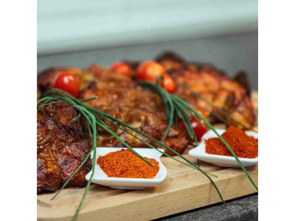 Ideální pro vepřovou krkovici, žebra, bůček, kuřecí stehna i křídla, hovězí maso nebo filety. Můžete ji použít i jako suchou posypku při pečení či grilování.