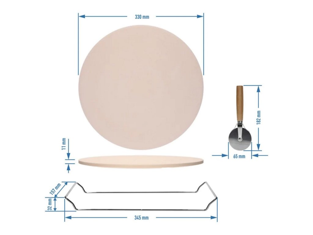 Pizza kámen s nožem a rukojetí vyrobený z cordieritu 33 cm