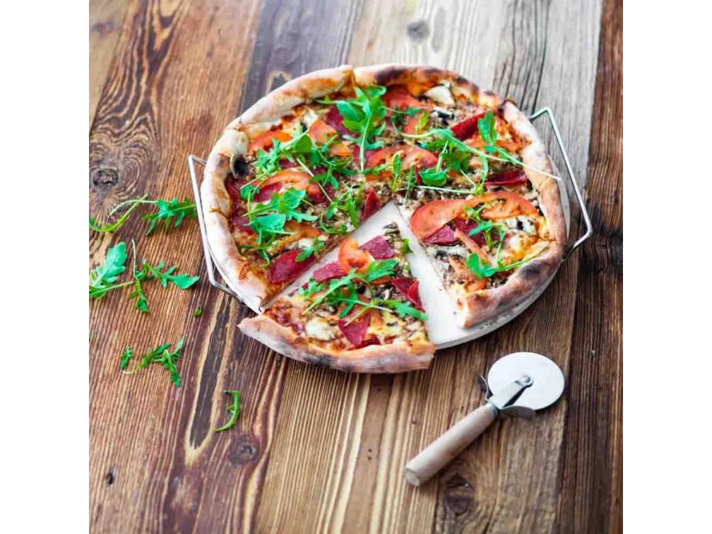 Pizza kámen je produkt, který potěší příznivce vaření a pečení, zejména ty, kteří milují italskou kuchyni. Skvěle se bude hodit jako originální dárek k narozeninám, svátku, matce nebo otci. Výběrem našeho produktu získáte kromě kamene i kovovou rukojeť, díky které můžete rozpáleným kamenem bez obav z popálení posouvat a podávat čerstvě upečenou pizzu svým přátelům a také ostrý a šikovný nůž s dřevěnou rukojetí, která vám umožní snadno rozdělit pizzu tak, aby nikdo nezůstal bez svého.