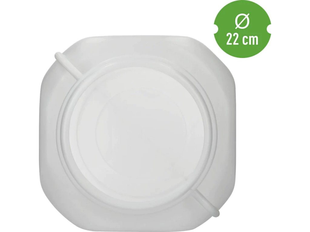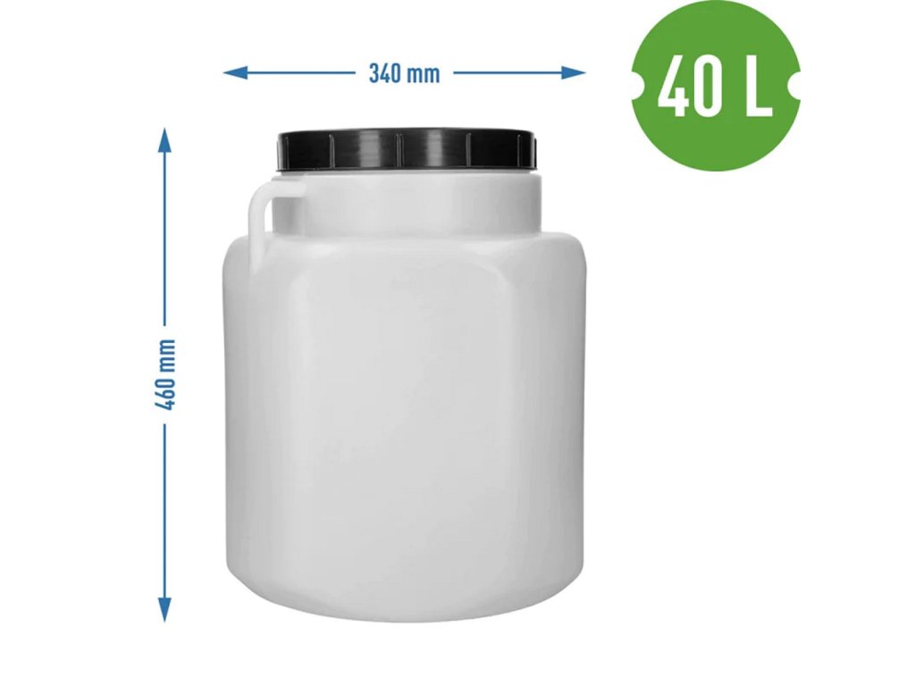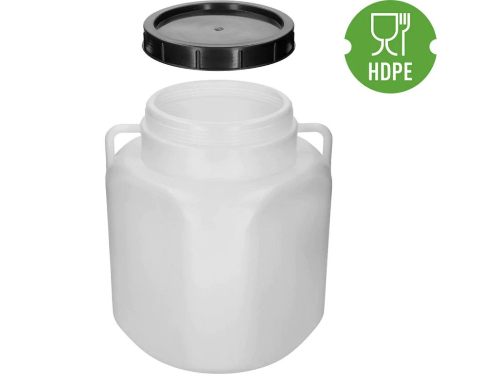Nádoba je vyrobena z bílého plastu HDPE schváleného pro styk s potravinami. Před prvním použitím ji doporučujeme dvakrát umýt vodou s běžným mycím prostředkem. Díky širokému hrdlu (Ø 22 cm) je údržba velmi snadná.