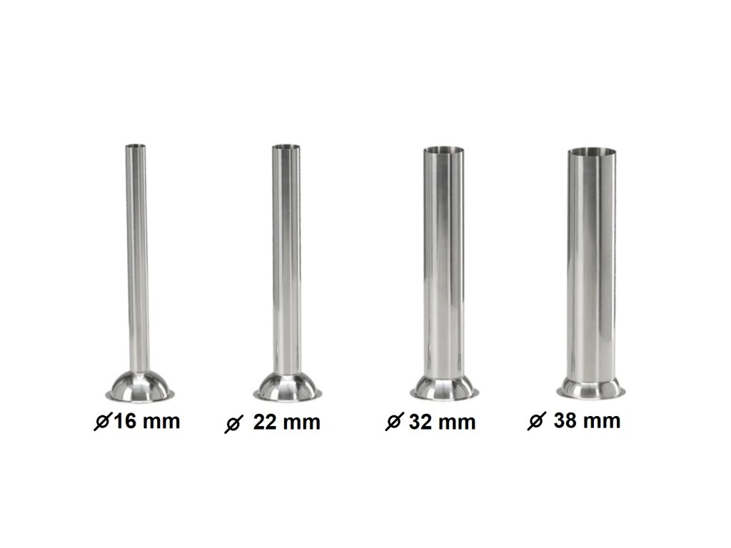 4 nástavce: 16 mm, 22 mm, 32 mm, 38 mm – vhodné pro různé druhy klobás