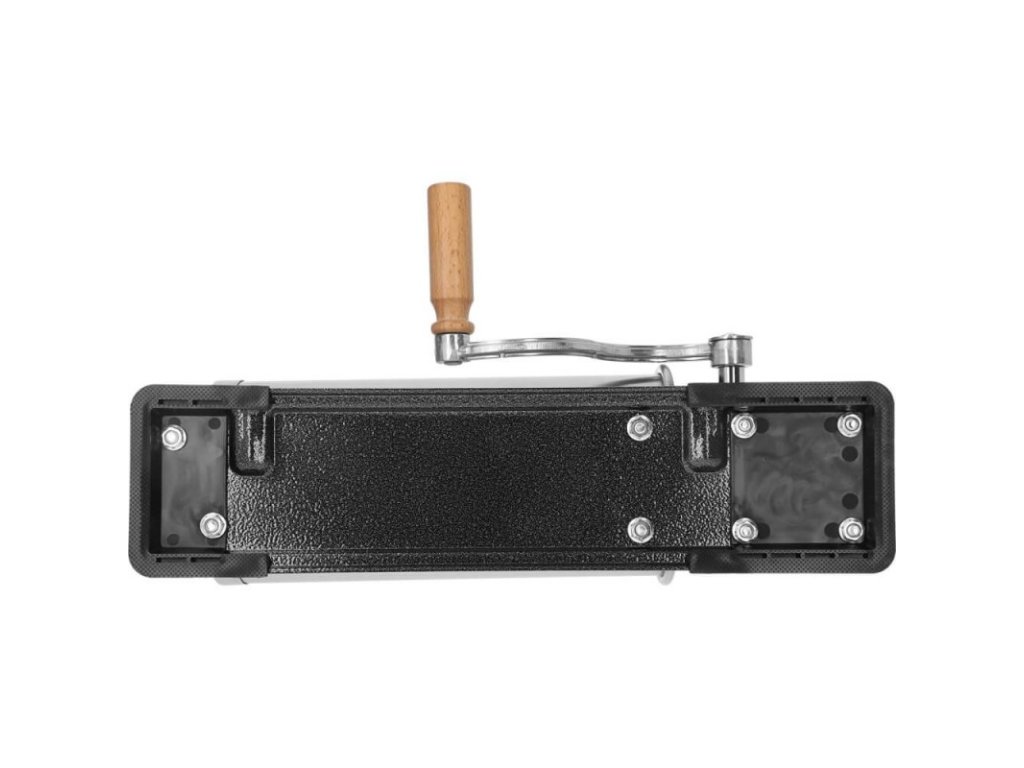Pevná základna se dvěma šroubovanými svorkami umožňuje stabilní připevnění plničky na kuchyňskou desku nebo stůl.