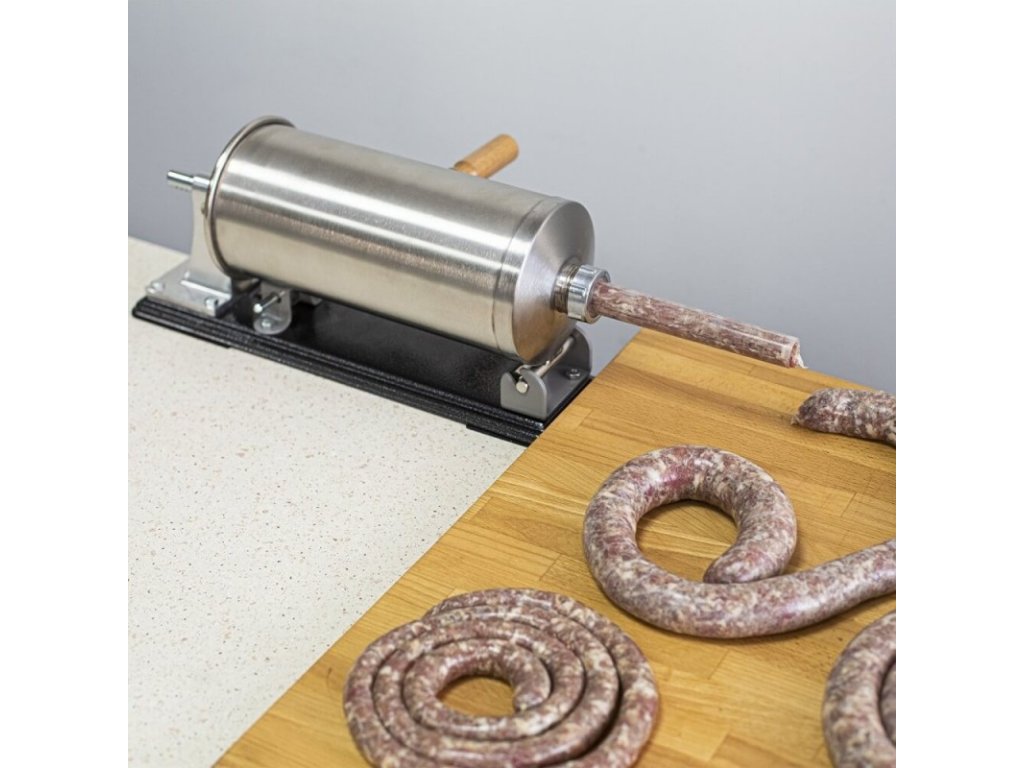 Nepostradatelný při přípravě domácích uzenin - ruční, horizontální plnička s kapacitou 3 kg je ideální pro výrobu uzenin, ale i pokrmů z drobů v domácí kuchyni!