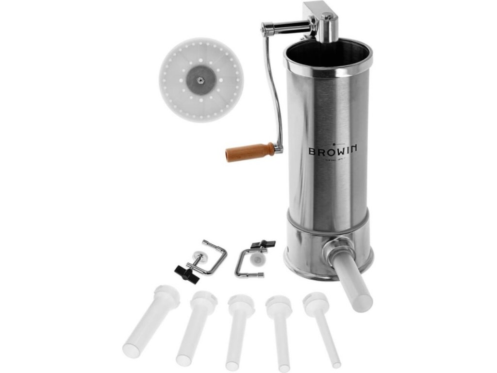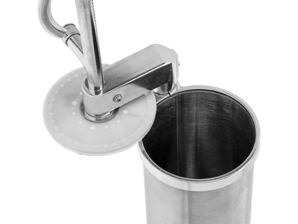 Sníte o zdravém domácím mase bez konzervantů a zbytečných chemických přísad? Naše vertikální plnička je nenahraditelné zařízení, které se jistě bude hodit při výrobě domácích uzenin a vnitřností. Vysoce kvalitní nerezová ocel, ze které je plnicí válec vyroben, stejně jako promyšlená konstrukce a speciálně navržený píst odolný proti ohybu vám umožní sloužit po léta! Píst je navíc vybaven odvzdušňovacím otvorem, díky kterému je vzduch vytlačován zpod pístu a netlačen do střeva. Sada s naší plnicí také obsahuje 6 trychtýřů různých velikostí, které vám umožní vyrábět domácí výrobky o průměrech od 14 mm do 35 mm. Výběrem naší plničky získáte možnost připravit opravdu rozmanitá jídla! Plnička se velmi snadno používá a udržuje.
