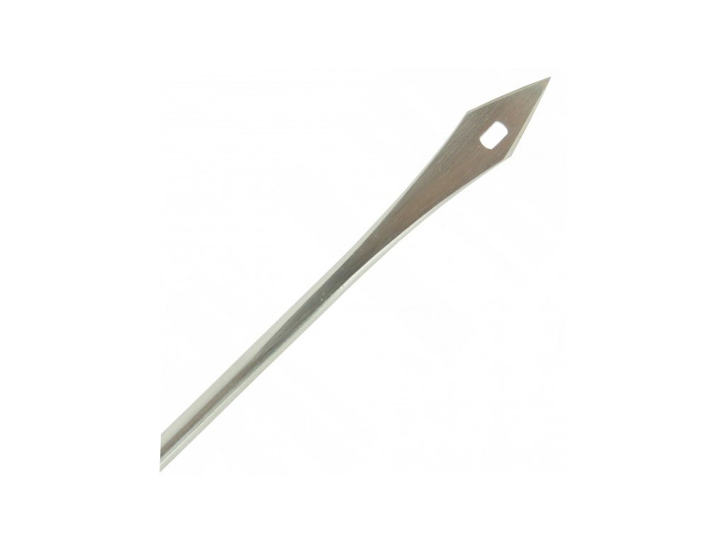 Jehla s dírkou TYPU B na konci, kterou lze snadno vázat šunky, šít střívka nebo navíjet nitě na klobásy.