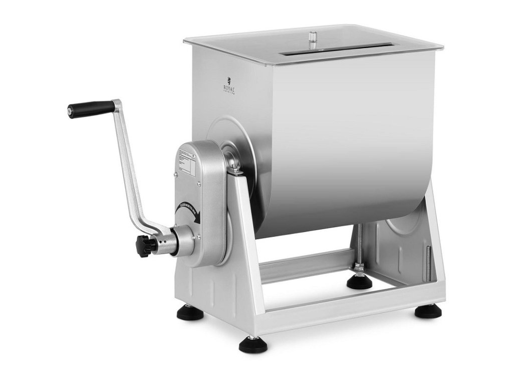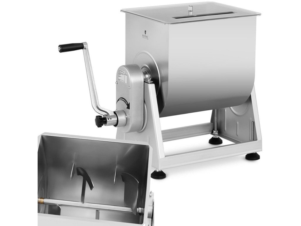 Míchačka na maso značky Royal Catering s objemem 28 litrů je ideální pro rychlé a důkladné promíchání masa s kořením a dalšími ingrediencemi. Toto zařízení je perfektní pro přípravu směsí na klobásy, sekané a další masné výrobky, a to jak v profesionálních kuchyních, tak i v domácnostech.