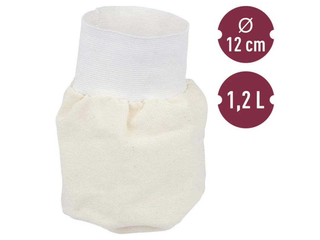 Opakovaně použitelný filtrační sáček o objemu 1,2 L, vyrobený z přírodní odolné tkaniny. Ideální pro snadnou a efektivní filtraci domácích likérů a tinktur.