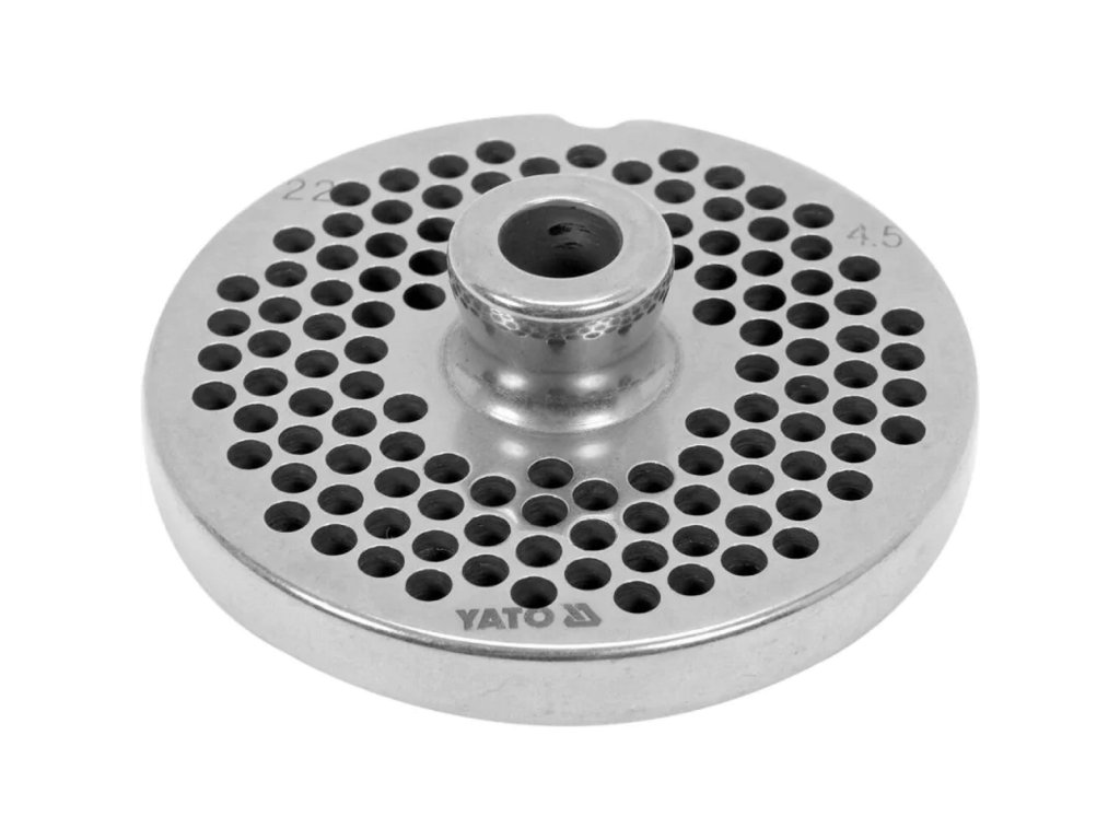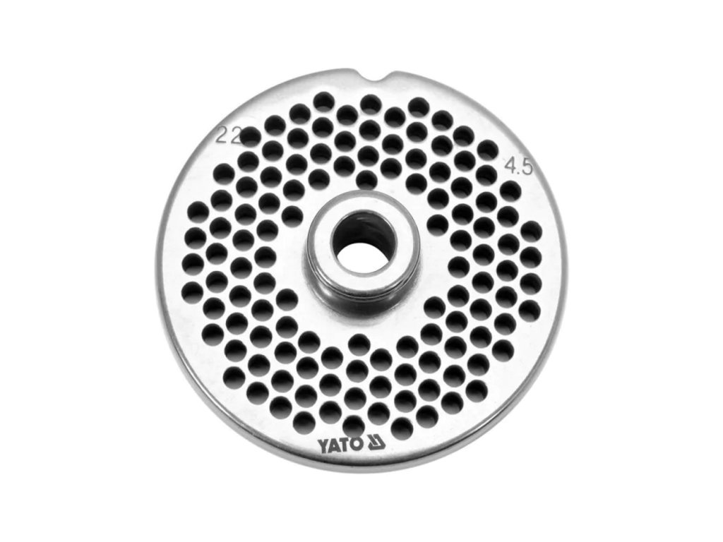 Sítko YG-03271 s integrovaným pouzdrem je ideální náhradní díl pro mlýnek YATO YG-03235. Průměr otvorů 4,5 mm je perfektní volbou pro běžné každodenní mletí – např. na sekanou, karbanátky, klobásy i základní směsi.