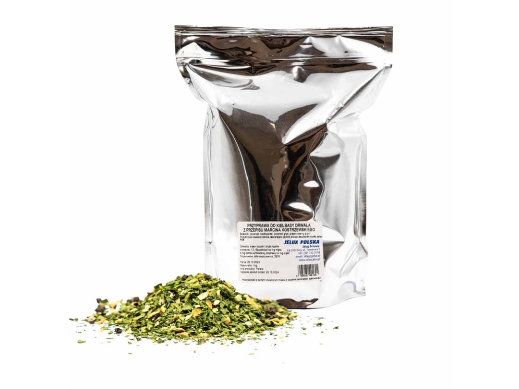 Objevte lahodnou směs koření na klobásy "Dřevorubec" podle receptury Marcina Kostrzewského. Tato jedinečná směs využívá pouze přírodní ingredience, bez přidané soli, cukru a jiných umělých zvýrazňovačů chuti, což zajišťuje zdravé a chutné klobásy pro celou vaši rodinu a přátele.
