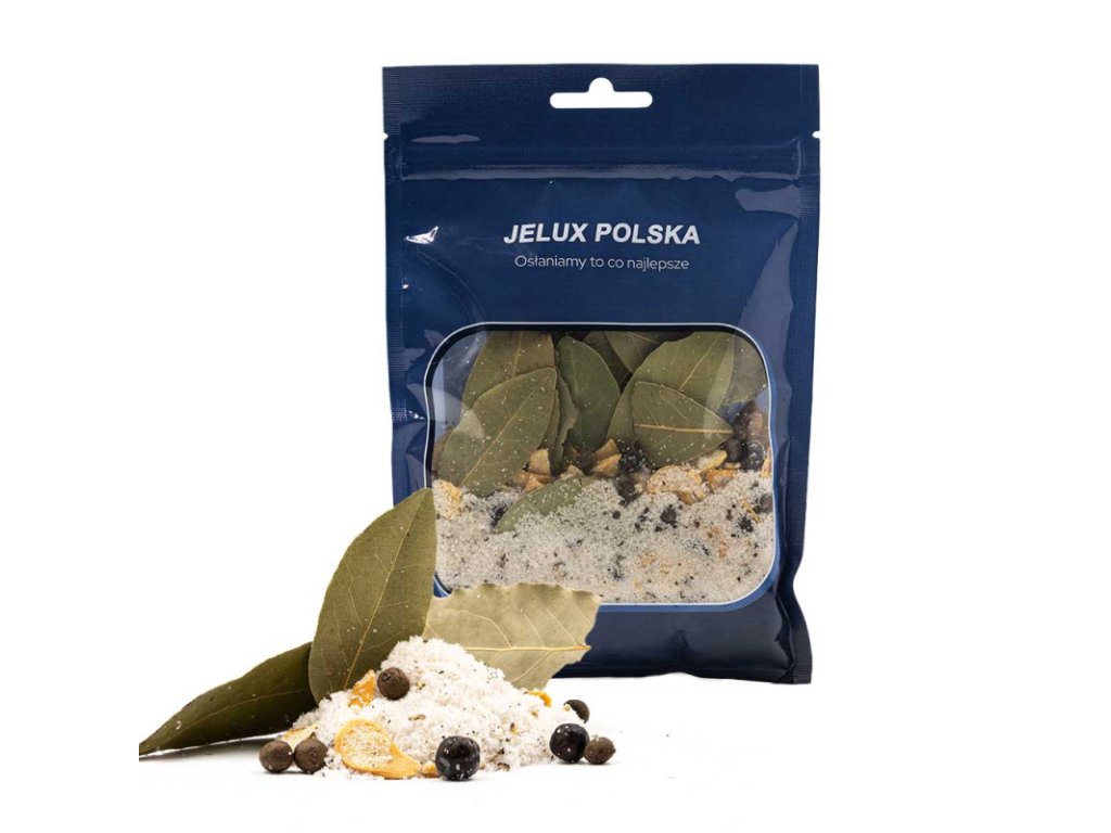 Směs koření "Jelux" vám poskytne přírodní ingredience pro přípravu chutných a aromatických uzenin, jako jsou šunky, panenky, vepřová karé nebo slanina. 860 g směsi na 7,5 litru vody umožní ošetřit až 15 kg masa. Pro ještě intenzivnější chuť doporučujeme přidat 15 g Maggi.