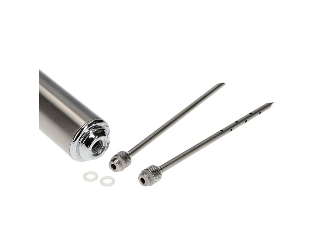Připravte pokrmy tak, jak máte rádi – dvě jehly, které jsou součástí sady, vám umožní nanášet marinády dvěma způsoby. První - s širokým výtokem, je určen pro nanášení marinád s velkými kousky koření. Druhá - má několik otvorů, ty zajišťují rovnoměrné vstřikování marinády do masa.