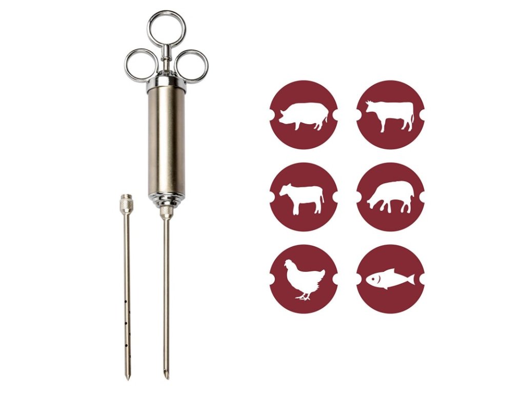 Pokud sníte o šťavnatém, aromatickém a lahodném mase – při nakládání masa zvolte injektor se dvěma jehlami. Jeden z nich vám umožní aplikovat marinády s velkými kousky koření. Druhý - díky charakteristickému designu s mnoha otvory v různých výškách zajistí, že všechna vaše masa budou vstřikována rovnoměrně!