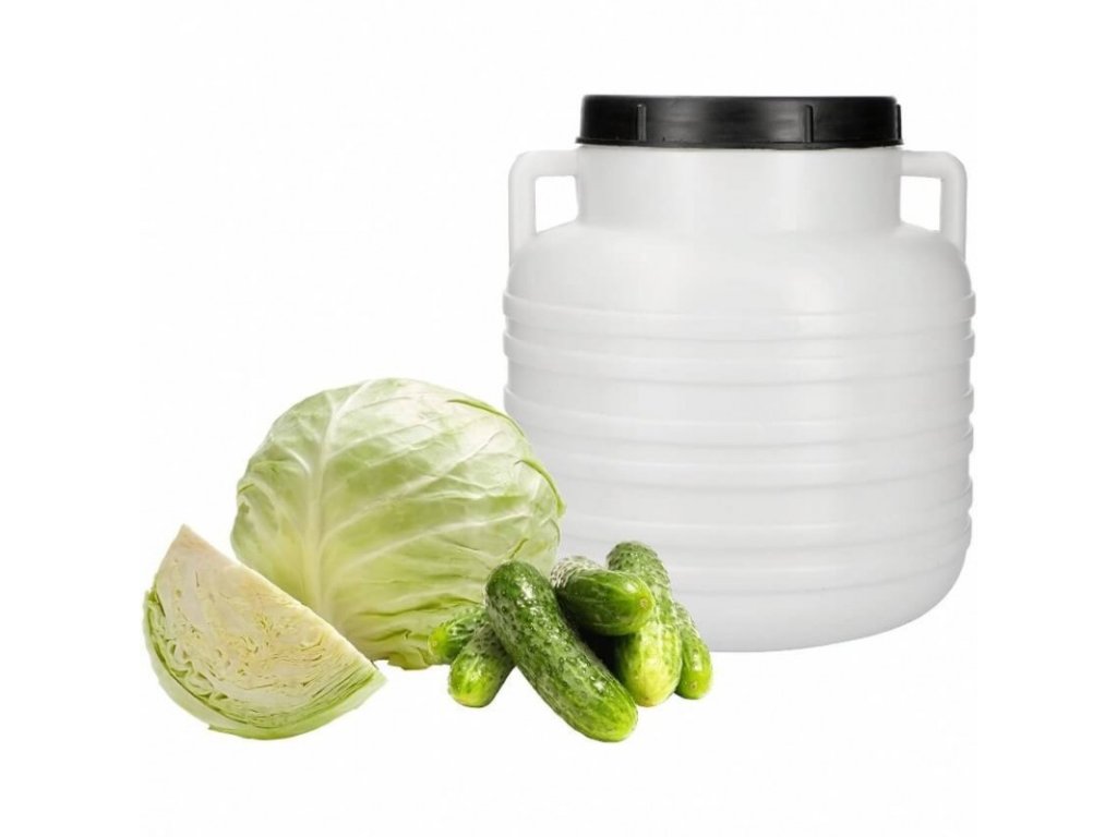 Univerzální a všestranný, bílý, plastový sud s uzávěrem dobře poslouží jak při přípravě kysaného zelí a okurek, tak i jako nádoba na kvašení. Vzhledem k jeho rozměrům (délka 26 cm x šířka 26 cm x výška 28,5 cm) jej můžete využít i ke skladování a přepravě různých produktů na výšku. Jeho estetické zpracování, odolnost a pevnost materiálu znamená, že se vám bude líbit po dlouhou dobu. Rukojeti hlavně vám umožní pohodlné přenášení. Široký vnitřní průměr hlavně (13 cm) umožňuje snadné a bezproblémové čištění. Bílá barva je nejen elegantním designem, díky kterému bude sud krásně vypadat v domácí spíži, ale také způsobem, jak se do potravin dostat umělá barviva. Sud je celý vyroben z materiálu HDPE, schválený pro styk s potravinami - i pro moření a alkoholové kvašení.