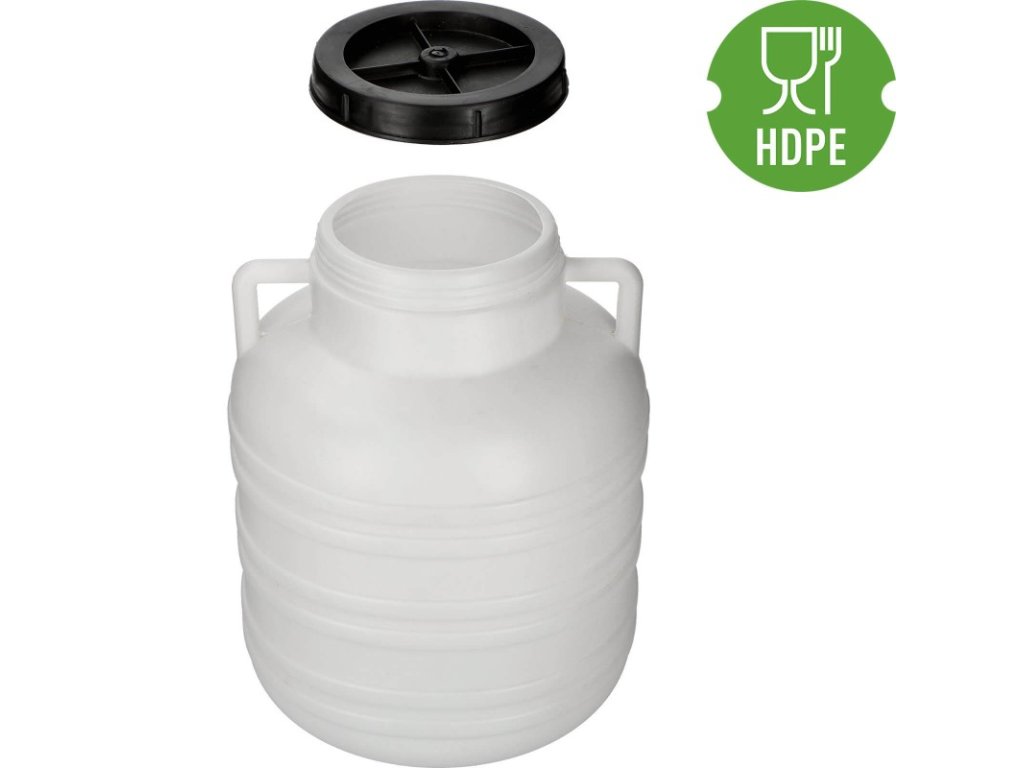 Univerzální a všestranný, bílý, plastový sud s uzávěrem dobře poslouží jak při přípravě kysaného zelí a okurek, tak i jako nádoba na kvašení. Vzhledem k jeho rozměrům (délka 31 cm x šířka 31 cm x výška 38 cm) jej můžete využít i ke skladování a přepravě různých produktů na výšku. Jeho estetické zpracování, odolnost a pevnost materiálu znamená, že se vám bude líbit po dlouhou dobu. Rukojeti hlavně vám umožní pohodlné přenášení. Široký vnitřní průměr hlavně (13 cm) umožňuje snadné a bezproblémové čištění. Bílá barva je nejen elegantním designem, díky kterému bude sud krásně vypadat v domácí spíži, ale také způsobem, jak se do potravin dostat umělá barviva. Sud je celý vyroben z materiálu HDPE, schválený pro styk s potravinami - i pro moření a alkoholové kvašení.