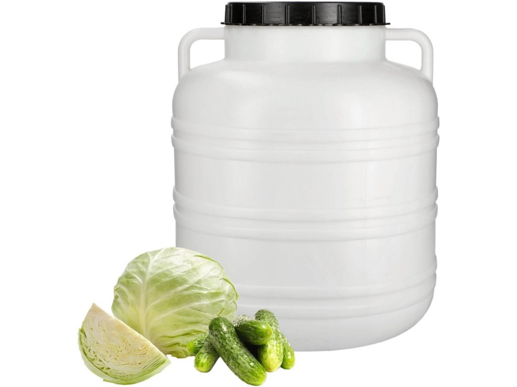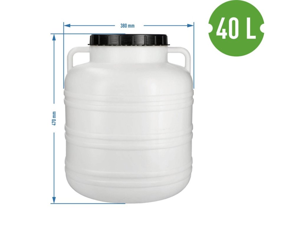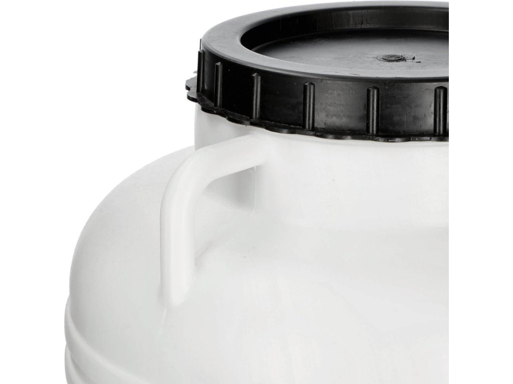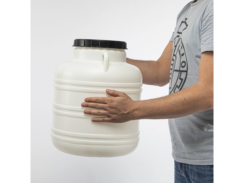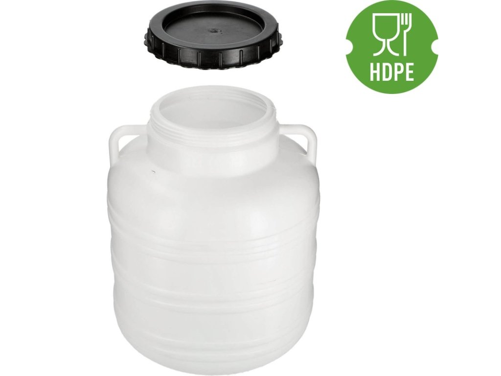 Univerzální a všestranný bílý plastový sud s uzávěrkou se hodí nejen při přípravě kysaného zelí a okurek, ale také jako nádoba pro kvašení. Díky svým rozměrům (délka 38 cm x šířka 38 cm x výška 47 cm) jej můžete použít i pro skladování a přepravu různých výrobků ve svislé poloze. Jeho estetické provedení, trvanlivost a odolnost materiálu zajistí, že si jej budete dlouho užívat. Rukojeti na sudu vám umožní snadné přenášení. Široký vnitřní průměr sudu (17 cm) usnadní jeho čištění. Bílá barva nejenže vypadá elegantně a umožňuje, aby sud skvěle vynikal ve vaší domácí spíži, ale také zabrání průniku umělých barviv do potravin. Tato nádoba je kompletně vyrobena z plastu HDPE, který je určený k styku s potravinami, včetně kvašení a alkoholické fermentace.