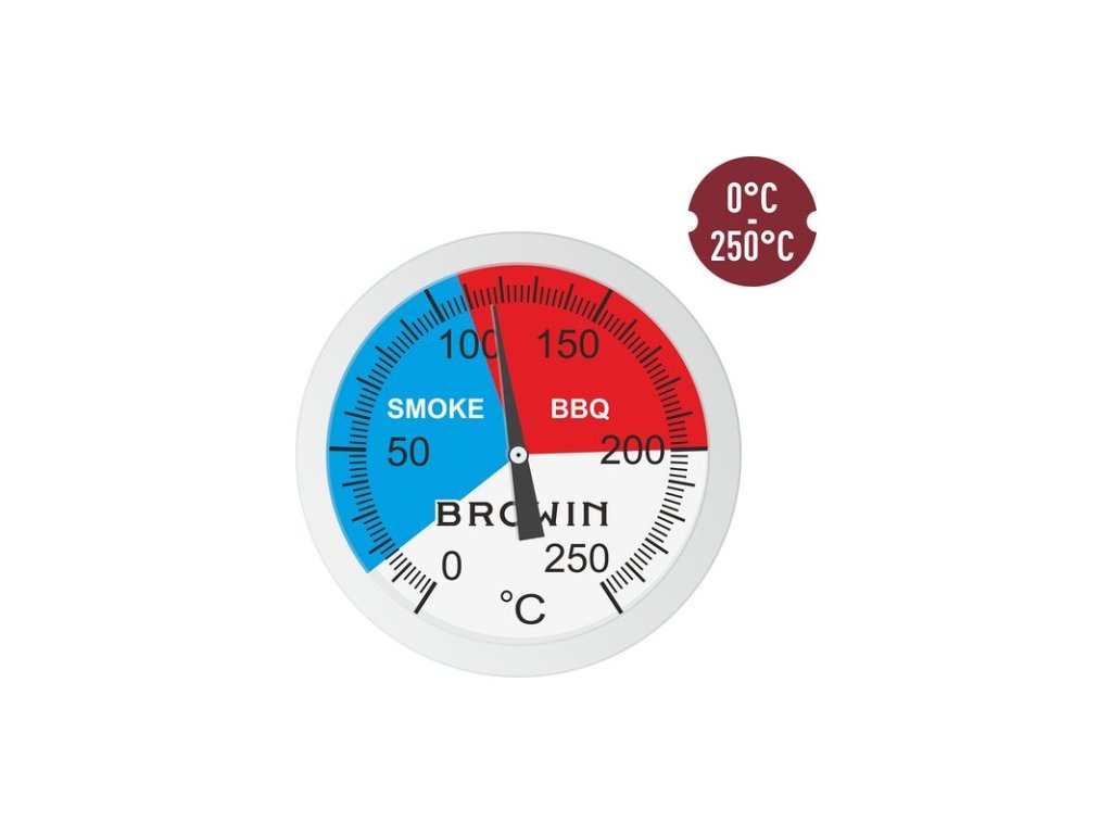 Speciální závit s maticí umístěný v sondě vám umožní snadnou instalaci teploměru na stěnu nebo dveře udírny. Díky barevnému ciferníku nebylo ovládání teploty nikdy tak snadné - stačí jediný pohled, abyste zjistili, zda je teplota příliš nízká, dokonalá nebo příliš vysoká!
