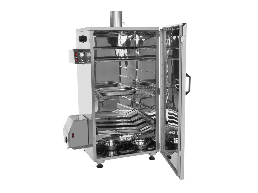 - Elegantní design a kvalitní materiál: Udírna je vyrobena z leštěného nerezového plechu, který nejenže zajišťuje esteticky příjemný vzhled, ale také splňuje přísné hygienické normy.