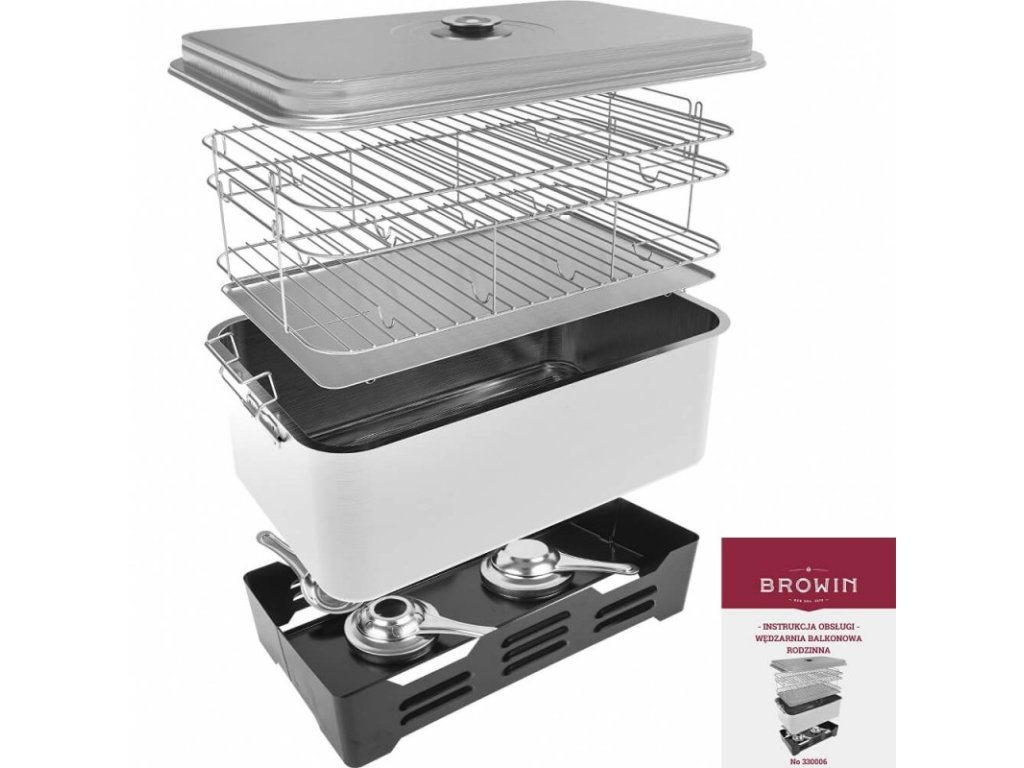 Vyrobeno z vysoce kvalitní nerezové oceli, umožňuje uzení masa, ryb, sýrů, vajec a uzenin. Jeho velikost znamená, že jej využijete jak na balkóně, terase, na zahradě, tak i při cestování, například v kempu nebo bivaku. Použití jednoho roštu udírny vám umožní udit až 4 pstruhy najednou - dva přídavné rošty znamenají, že můžete v udírně připravovat jídla během dovolené nebo setkání ve větší skupině!