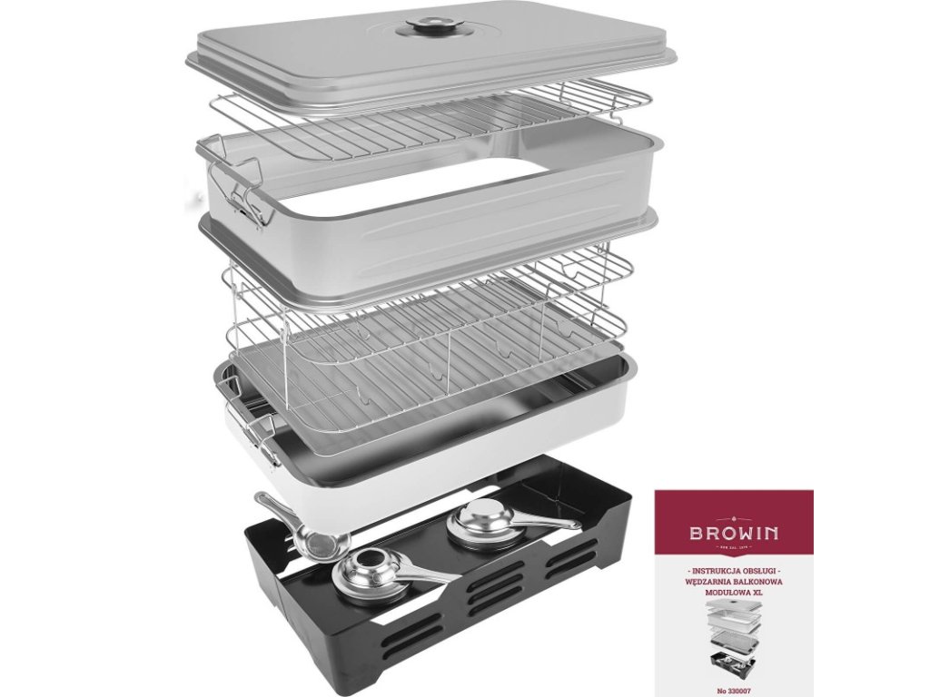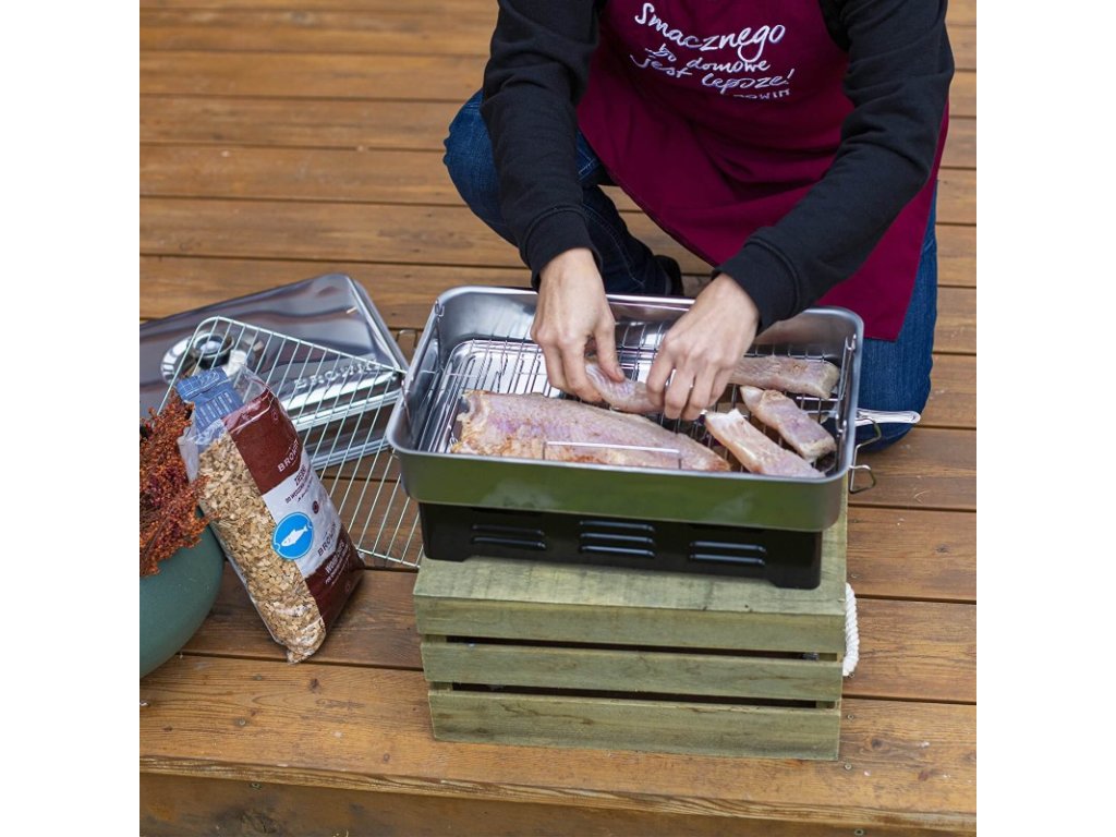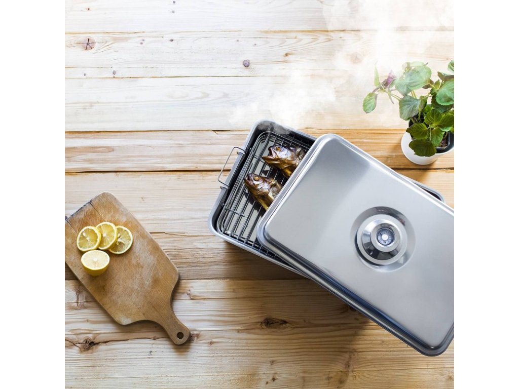 Vyrobena z kvalitní potravinářské nerezové oceli, udírna je pevná, odolná a snadno se čistí. Díky malým rozměrům je ideální na balkón, zahradu, ale také na kempování či bivak. Udit můžete maso, ryby, sýry, vejce nebo uzeniny. Jeden rošt pojme až 4 pstruhy, což znamená, že si můžete připravit chutné jídlo i pro větší skupinu.