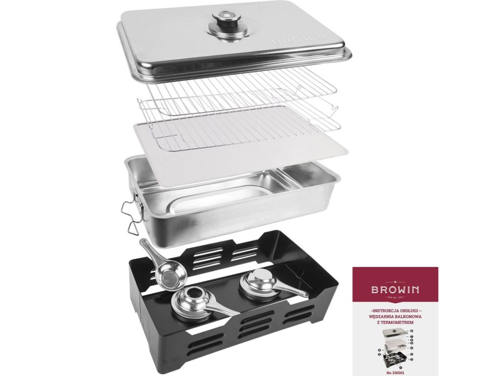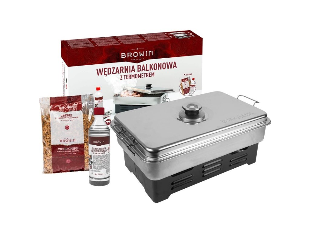 Sada obsahuje kromě udírny gelové palivo BROWIN a udící štěpky.