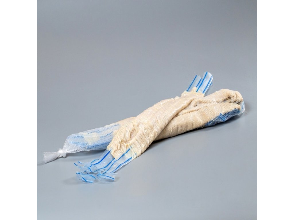 Jedno balení 10 metrů slaných střev obsahuje 5 proužků balených v síťce.
