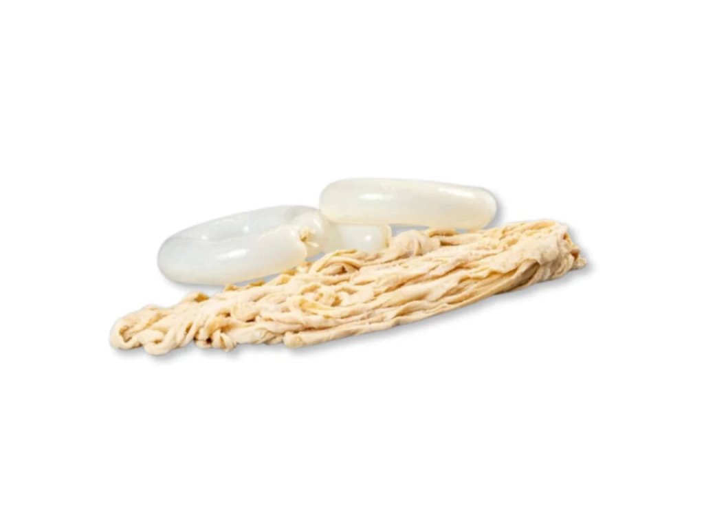 Střeva důkladně propláchněte a nechte 3–4 hodiny namočená ve vodě do 35 °C, ideálně s výměnou vody v polovině procesu.
