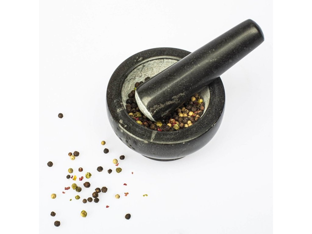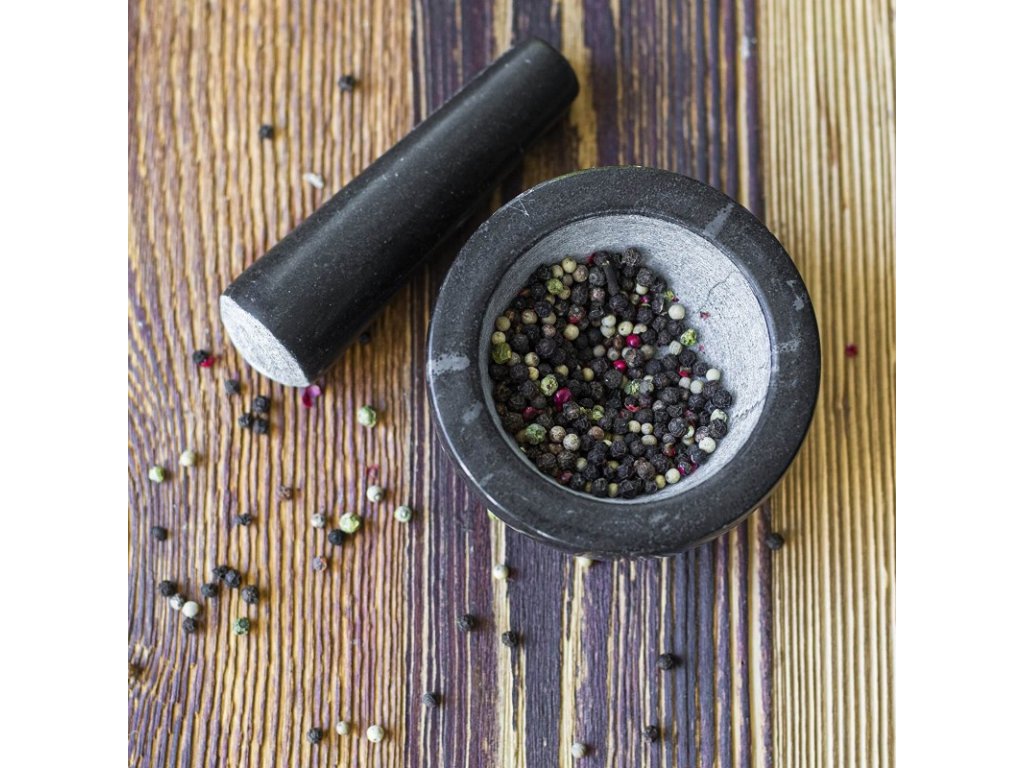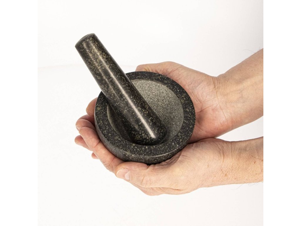 Funkční a užitečné - hrubý vnitřek hmoždíře a konec paličky umožňují rychlé a bezproblémové mletí všech bylinek, koření, ořechů a léků.