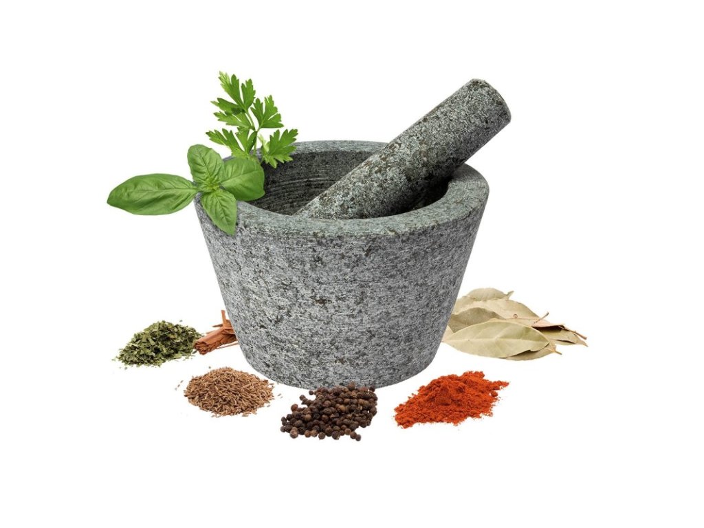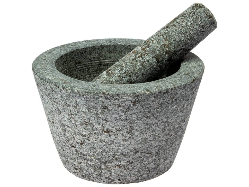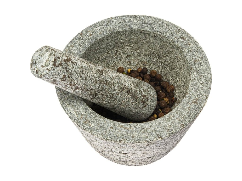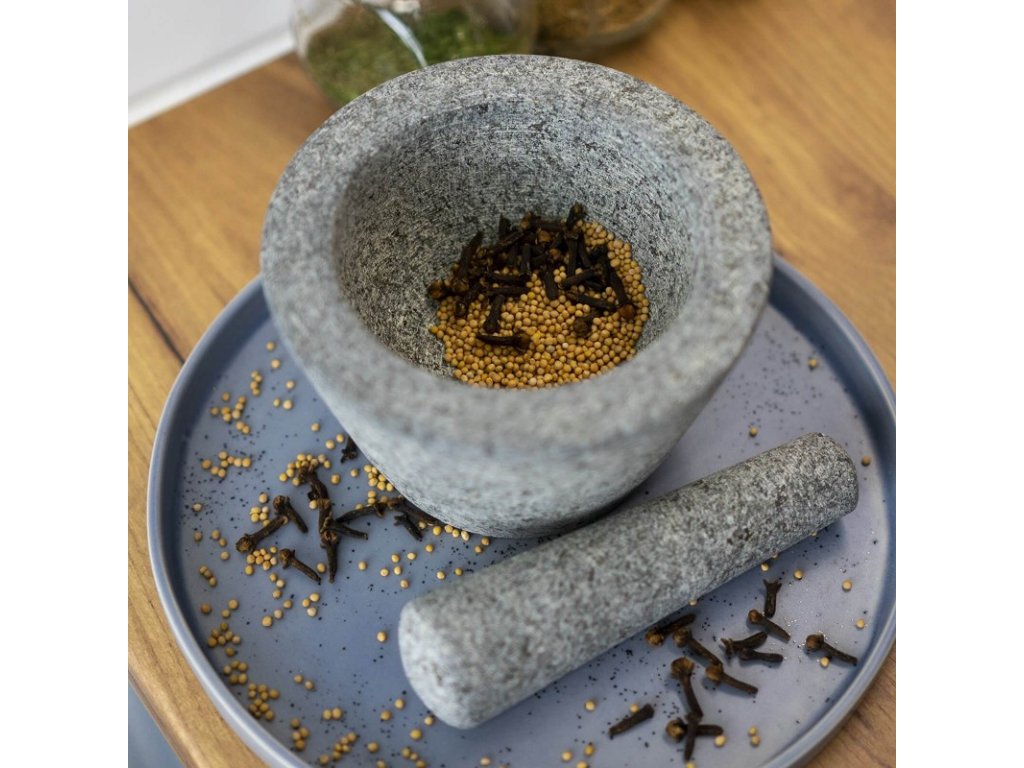 Funkční a užitečné - hrubý vnitřek hmoždíře a konec paličky umožňují rychlé a bezproblémové mletí všech bylinek, koření, ořechů a léků.
