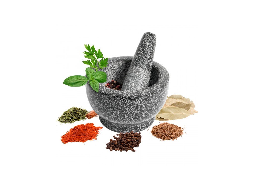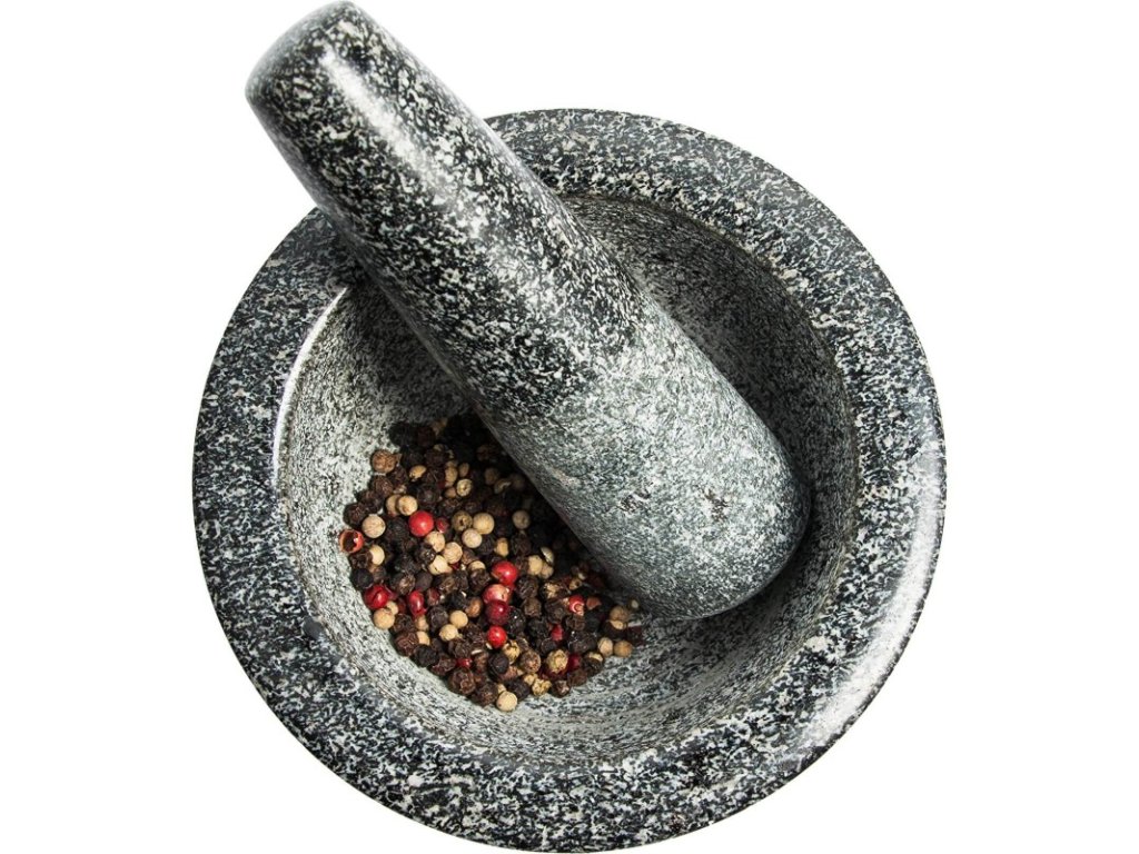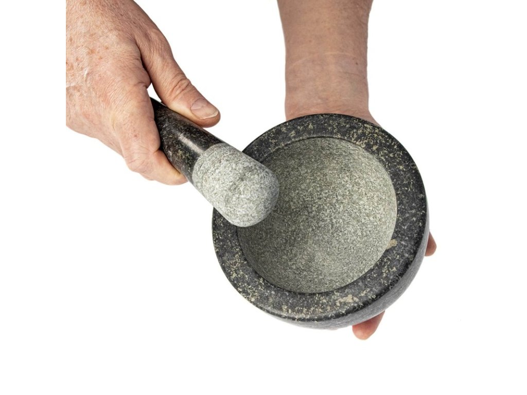 Funkční a užitečné - hrubý vnitřek hmoždíře a konec paličky umožňují rychlé a bezproblémové mletí všech bylinek, koření, ořechů a léků.